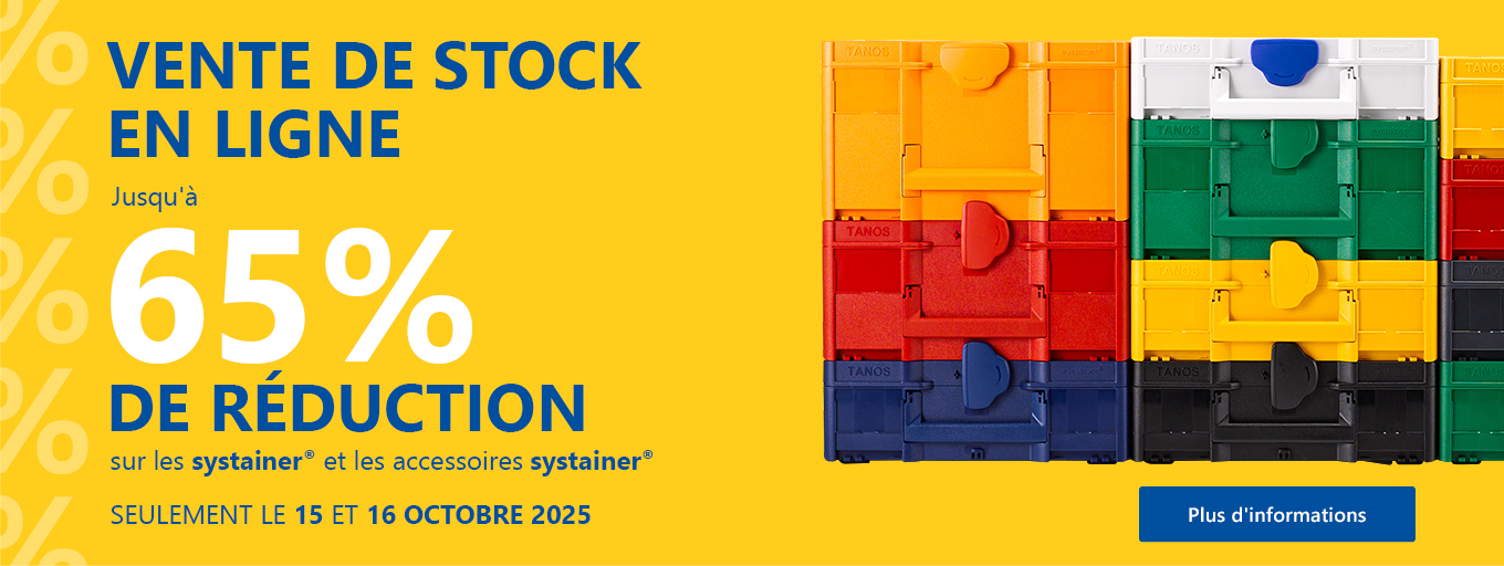 Les étagères virtuelles de notre boutique en ligne sont pleines à craquer de notre grand assortiment systainer®. Du systainer® T-Loc éprouvé à la nouvelle génération Systainer³, tu trouveras tout.